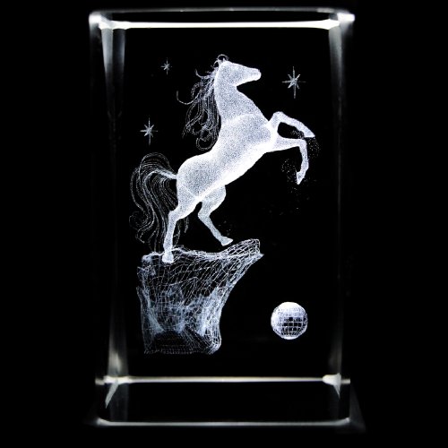 Kaltner Präsente Glasquader 3D Laser Kristall Glasblock mit LED Beleuchtung - Motiv Pferd